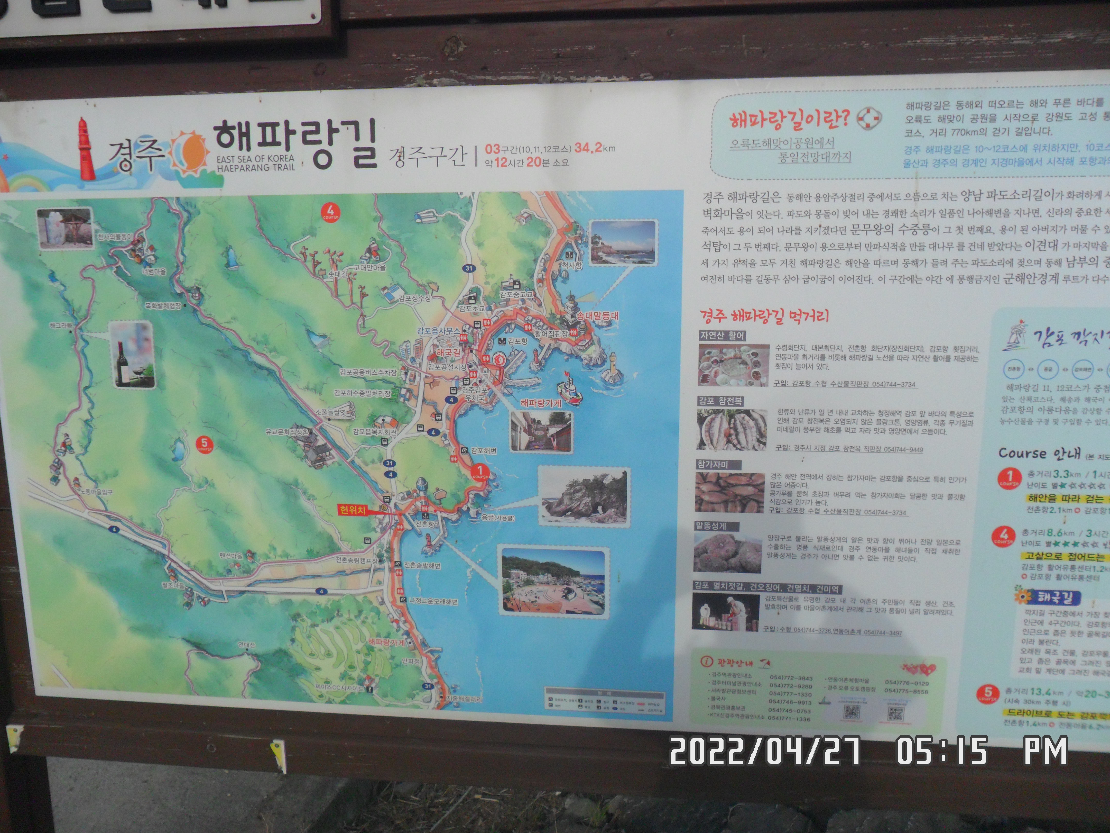 | 해파랑길 10코스 (경주권 1) (정자항~경주화암 주상절리~읍천항 벽화마을~나아해변) (0) | 2022.05.03 |