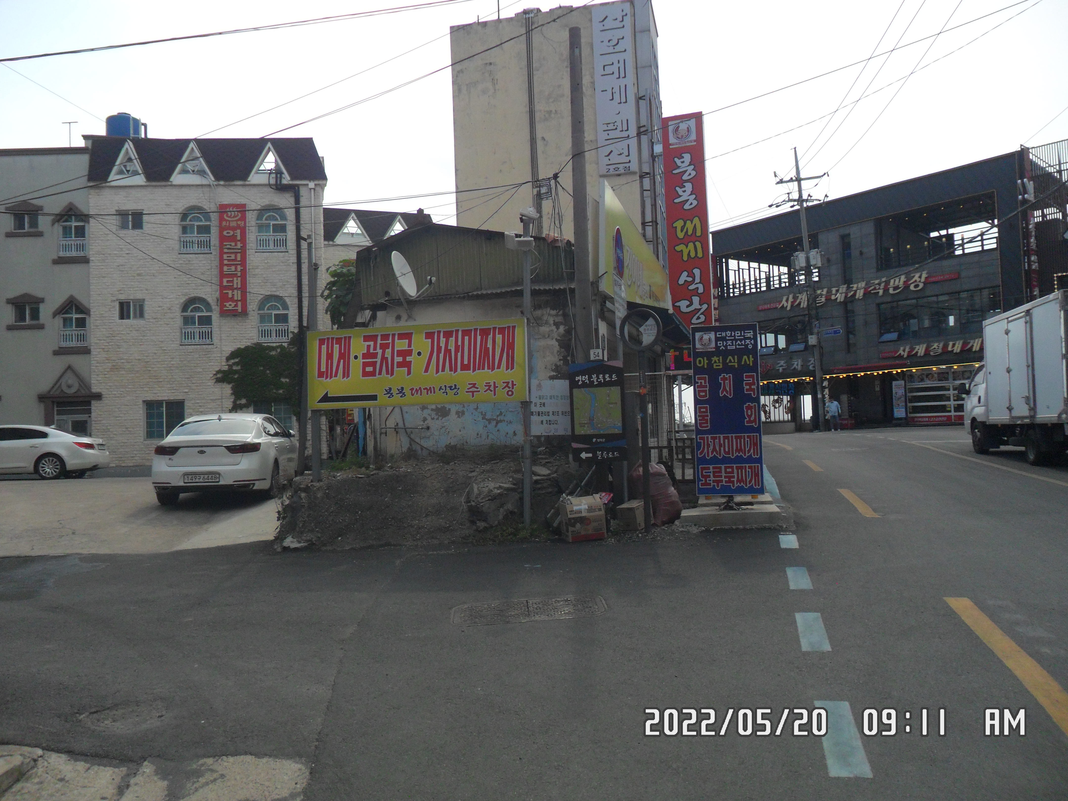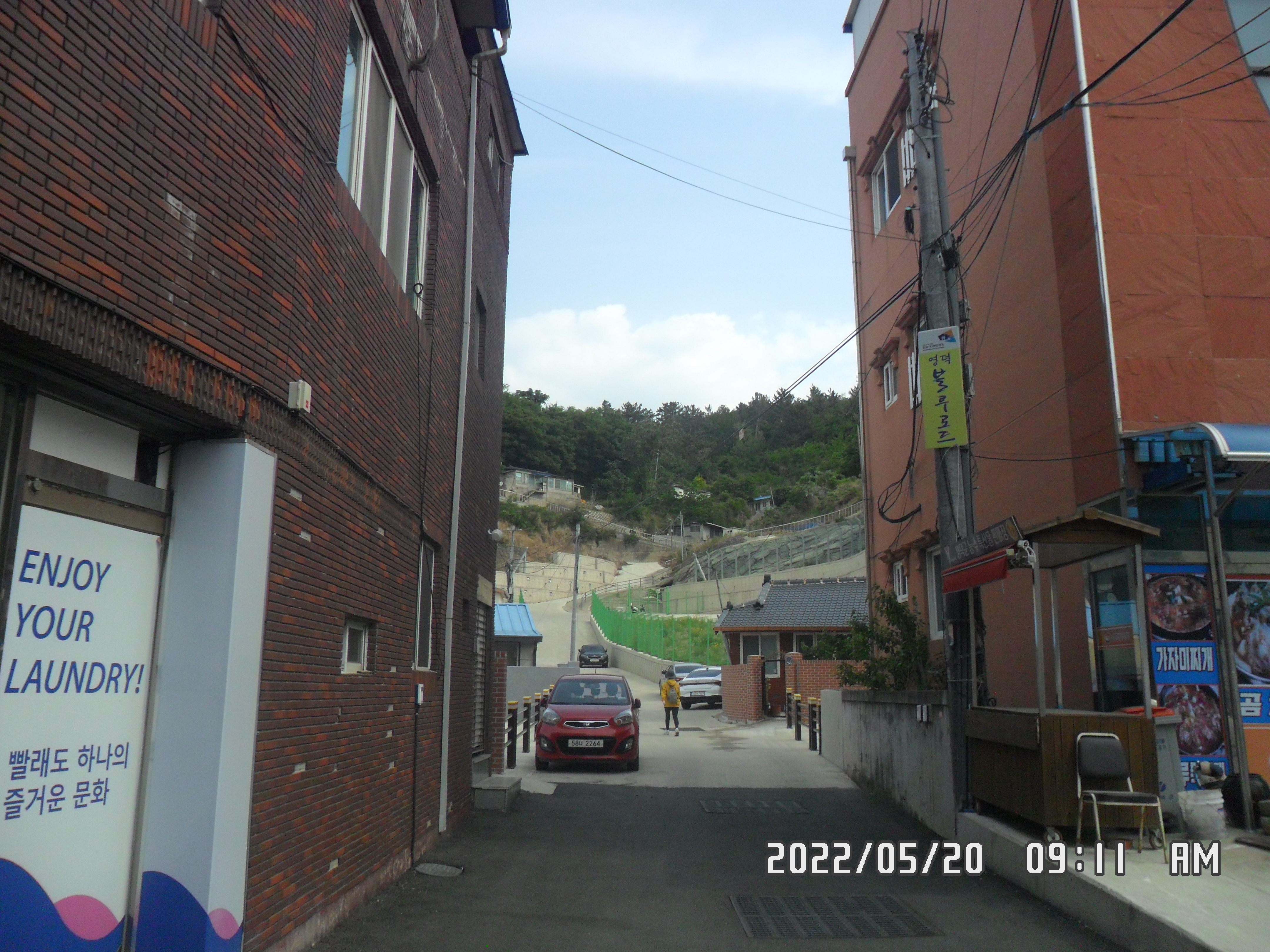 강구항 도착하여 스템프 찍고 다리건너 대게집 사이로 들어갑니다.