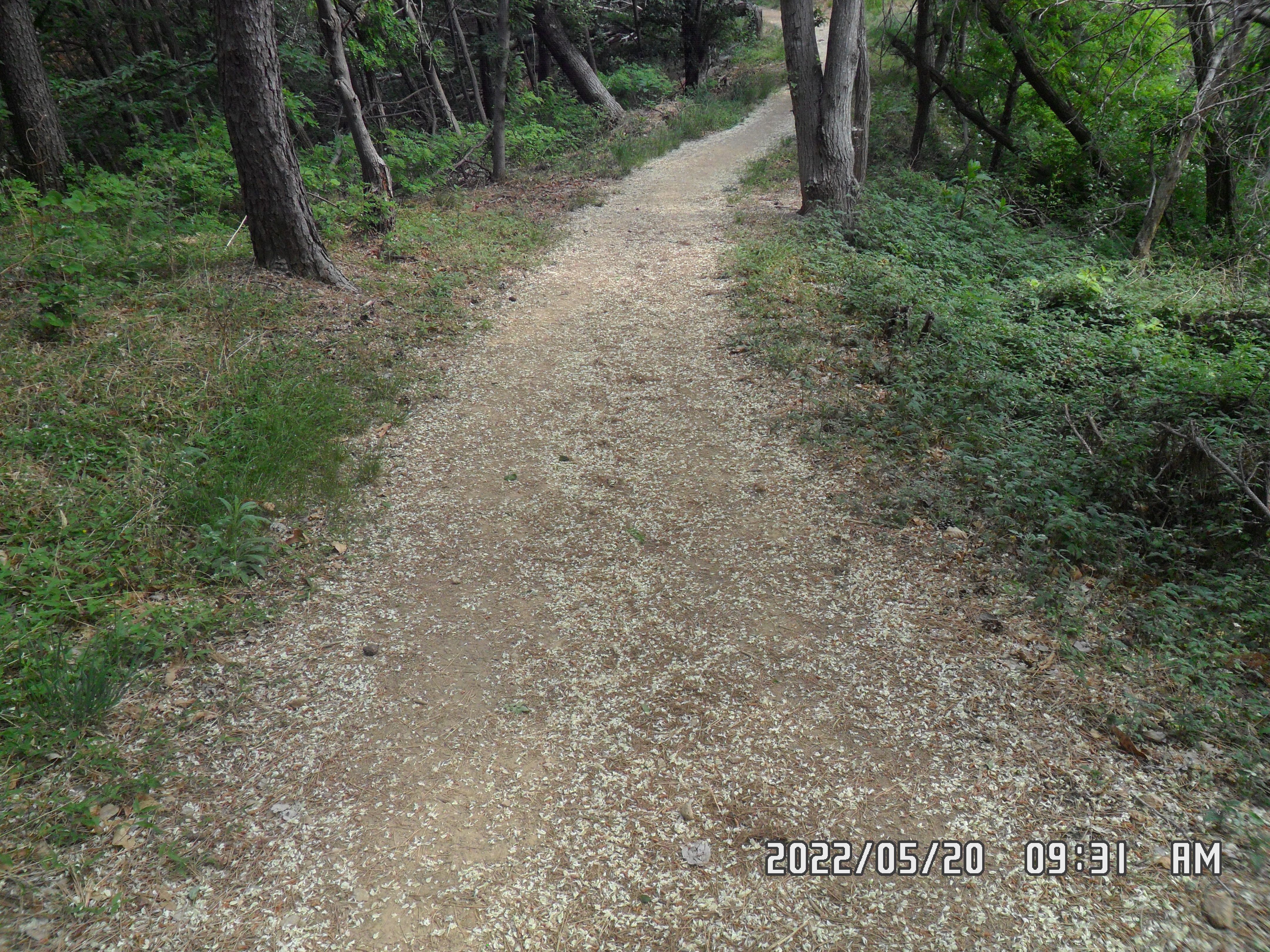 등로에는 아카시아 꽃잎이 떨어져 하얗게 길을 덮어습니다.(꽃길만 걷다, 산딸기 따 먹고.........)
