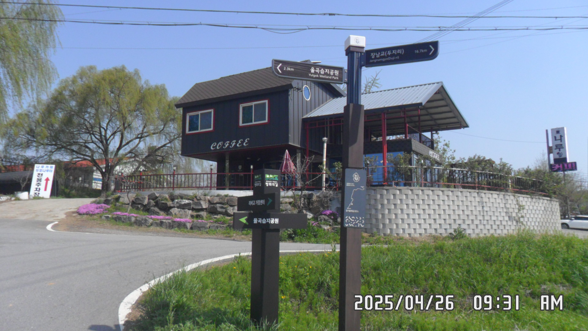 문산역 도착 후 92번 버스 아용하여 율곡2리 버스정류장 하차 후 바로 코스 시작입니다.